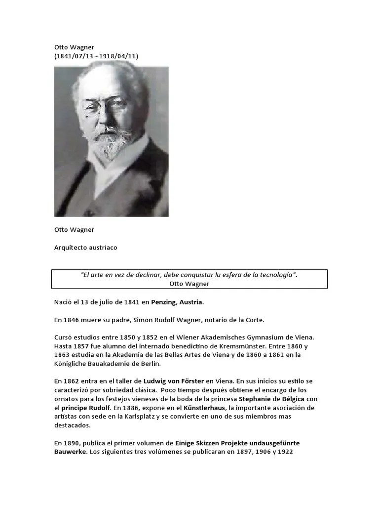 Er gewann den wettbewerb für die generalregulierung der stadt:. A very influential figure in the development of modern architecture. He attended the technical university in vienna, and later, he moved to berlin in 1860, and enrolled at the... Otto wagner was born on july 13, 1841, in penzing, austria.